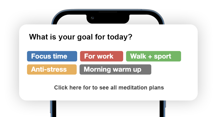 Begin your journey by deciding what you need most right now — to relax, focus, or ease anxiety. Your choice helps the app personalize each session for your current mood and mindset. Whether you’re winding down after a long day or preparing for a big moment, it adapts to you. With clear goals, every meditation becomes more meaningful and effective
