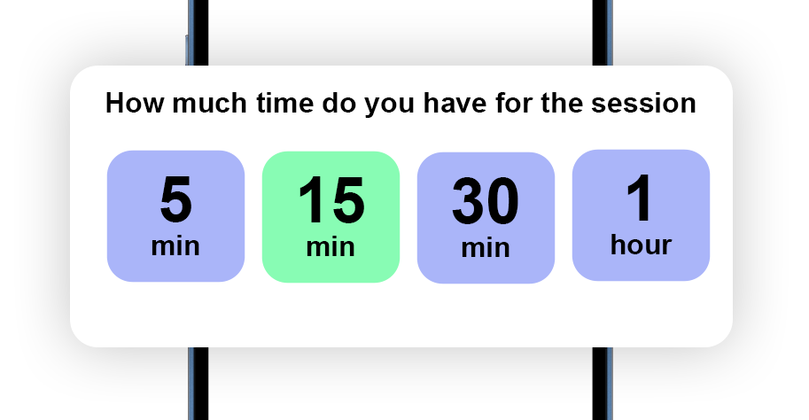 Decide how much time you have — and the app will shape your perfect session. Even a few minutes can bring clarity and reset your energy. When you have more time, longer sessions allow for deeper relaxation and self-connection. No matter your schedule, there’s always time to feel better