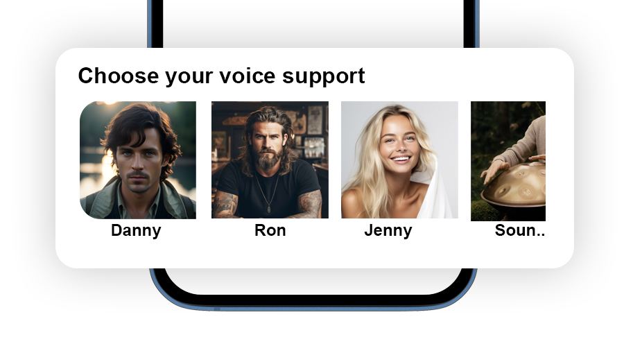 Select the voice that resonates with you — calm male, gentle female, deep or light tone — or meditate without a voice at all. Sometimes silence speaks louder, and the soothing rhythm of rain or ocean waves can be your perfect companion. You’re in full control of how your mind is guided. Each sound option is designed to deepen your relaxation and create the ideal atmosphere for mindfulness